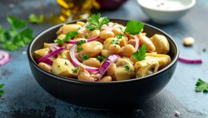 Bean Salad with Artichokes and Red Onion