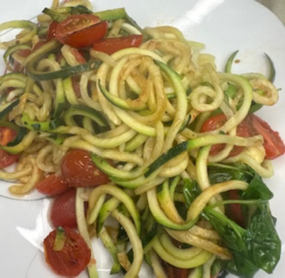 Spiralized Zucchini, Spinach & Tomato Pasta