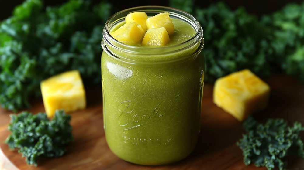 Green Smoothie with Kale and Fresh Pineapple