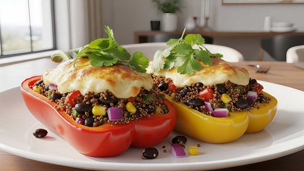 These stuffed peppers are colorful, nourishing, and easy to prepare.Quinoa and black beans create a balanced filling that feels satisfying without heaviness.Sweet corn adds brightness while melted mozzarella brings gentle comfort.Everything bakes together into a warm, complete meal.A simple dish that fits naturally into everyday cooking. Stuffed bell peppers filled with quinoa, black beans, corn, […]