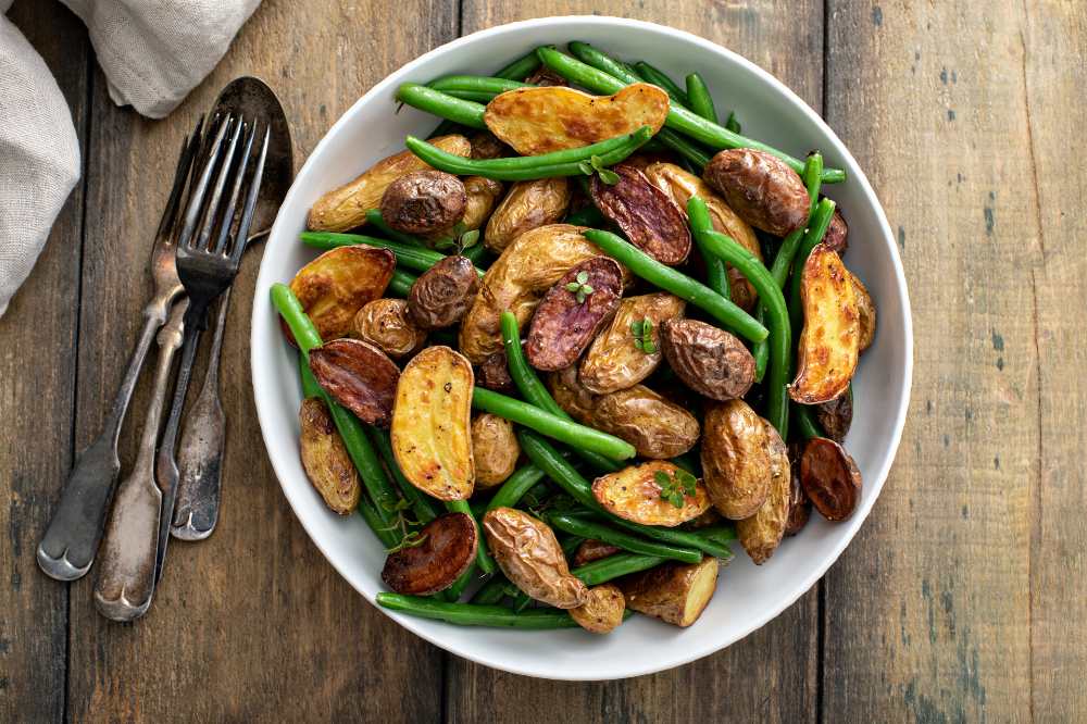 Roasted Crispy Fingerling Potatoes with Green Beans