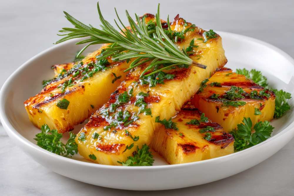 Grilled pineapple brings natural sweetness into balanced everyday eating.It offers steady energy while remaining light and refreshing.A warm yet simple dish that supports mindful eating habits.Fresh rosemary adds calm nourishment and subtle depth.The combination feels satisfying without heaviness.Ideal for a steady plant-forward lifestyle and everyday well-being. Grilled pineapple slices topped with fresh rosemary for a […]