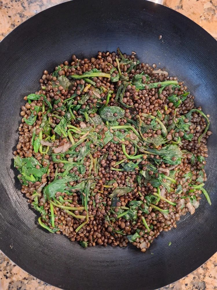 Black Lentils with Spinach, Olive Oil & Balsamic Vinegar
