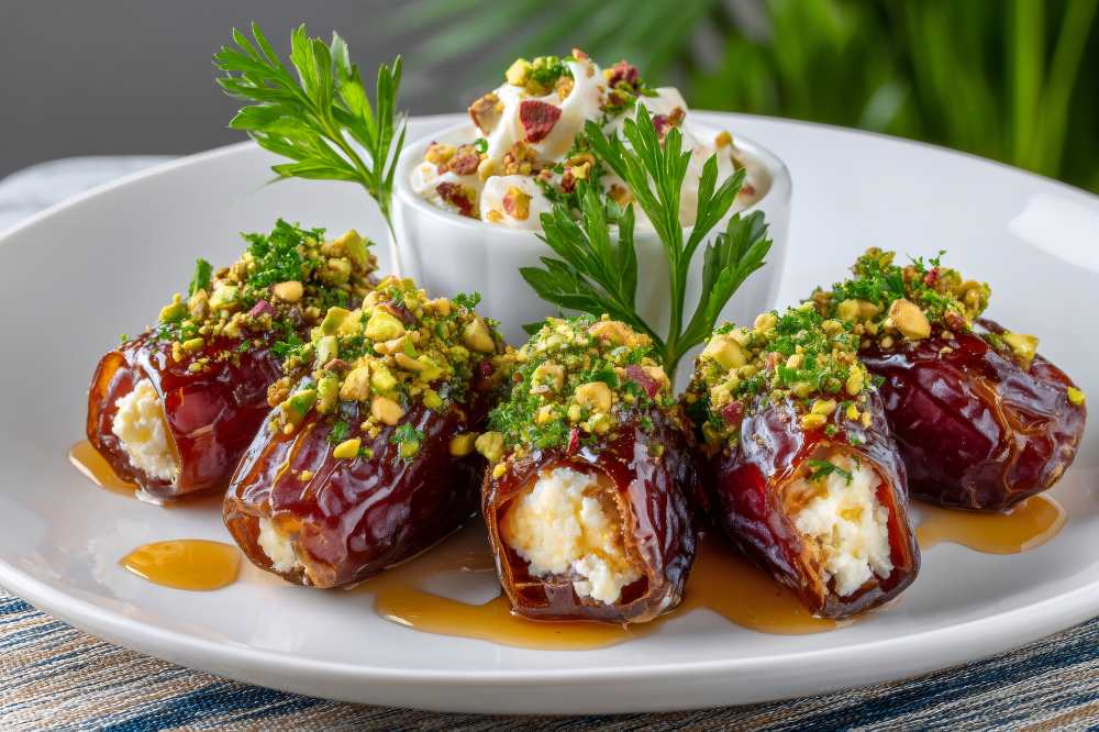 Dates Stuffed with Goat Cheese, Pistachios, and Honey