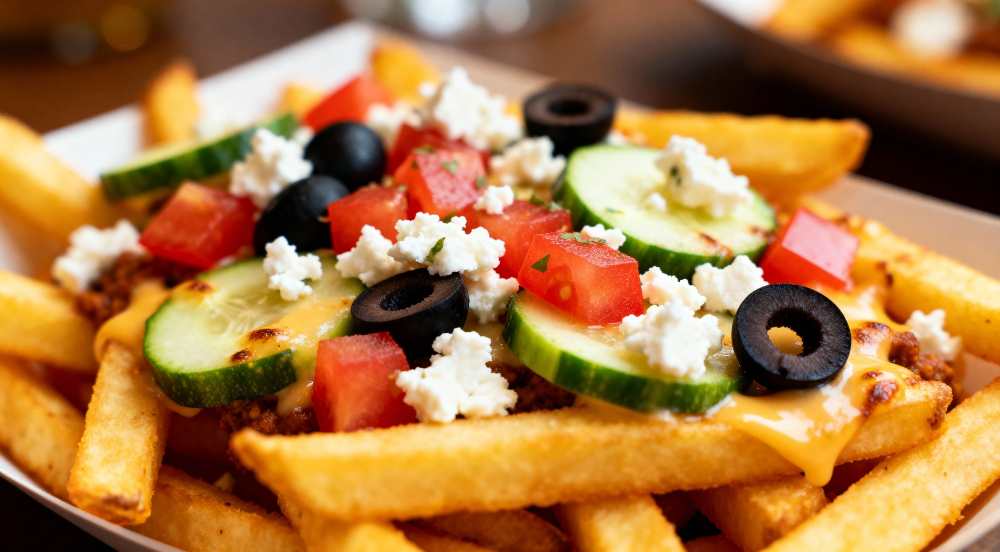 These loaded fries bring together warm comfort and fresh Mediterranean flavors.Crispy fries create a satisfying base layered with melted cheese.Fresh cucumber, tomato, and olives add brightness and balance.Feta provides a gentle salty finish that completes the dish.A simple sharing plate that feels both hearty and refreshing. Greek-style loaded fries with feta, melted cheese, cucumber, tomato, […]