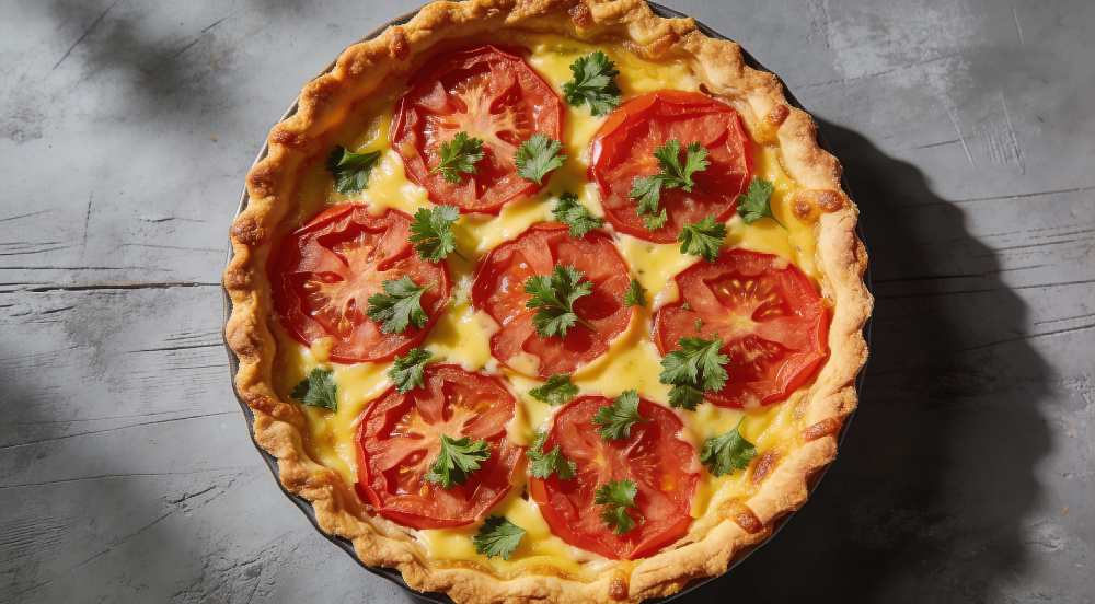 This quiche is warm, simple, and quietly satisfying.Juicy tomatoes bake gently into a creamy egg filling.Cheese adds richness while parsley brings a fresh finish.The preparation is straightforward and dependable.A comforting dish that works well for breakfast, lunch, or dinner. Quiche with tomatoes, parsley, and cheese baked into a creamy savory pie for a simple vegetarian […]