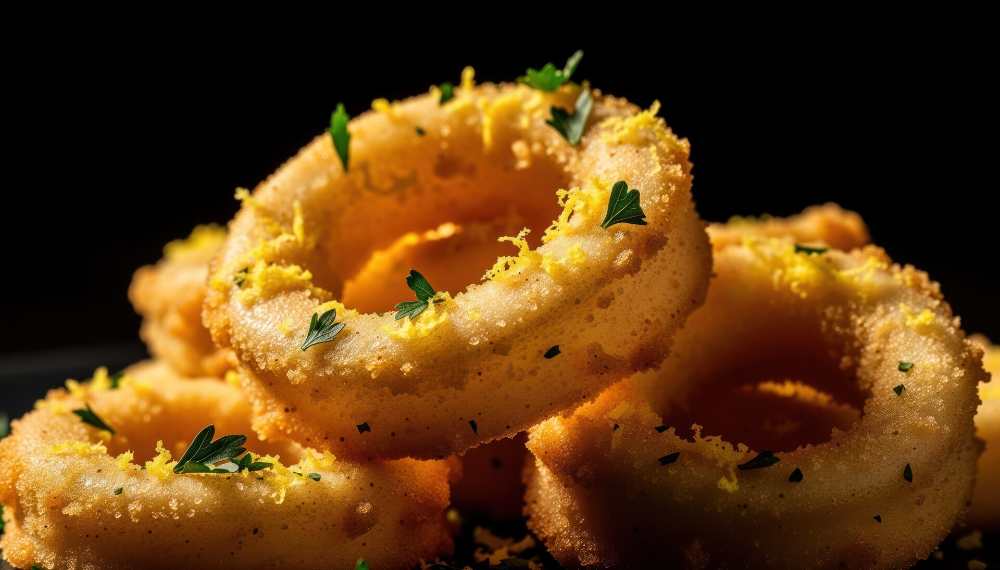 Onion rings are simple, crisp, and warmly satisfying.A light batter creates a golden coating that contrasts with the tender onion inside.Frying brings out a gentle sweetness in the onions.Fresh parsley adds a small touch of brightness at the finish.A classic snack that is easy to prepare and easy to share. Deep-fried batter onion rings garnished […]