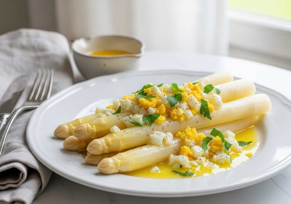 White asparagus is delicate, simple, and naturally elegant.Gently cooked spears remain tender while keeping their subtle flavor.A light butter sauce adds warmth without overwhelming the dish.Chopped egg and parsley bring texture and balance.A classic preparation that celebrates the vegetable with minimal effort. White asparagus served with chopped hard-boiled eggs, parsley, and butter sauce for a […]
